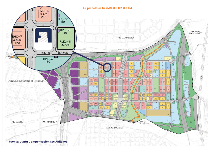 El desarrollo estará delimitado por las autopistas M-45, M-50 y la Radial 3, así como por las vías del metro que se encuentran en la superficie.